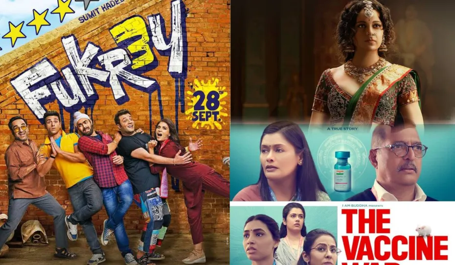 'फुकरे 3', 'द वैक्सीन वॉर' और 'चंद्रमुखी 2' जैसी कमाल की तीन फिल्में इस हफ्ते यानी 28 सितंबर को थिएटर में रिलीज हुई हैं। तीनों के बीच कड़ी टक्कर देखने को मिली है। तीनों ही फिल्मों ने 10 करोड़ का आंकड़ा पहले दिन पार नहीं किया है। ऐसे में पहले दिन की कमाई तीनों ही फिल्मों की संतोषजनक रही है। एक ओर जहां फुकरे में पुलकित सम्राट, मनजोत सिंह, ऋचा चड्ढा, वरुण शर्मा और पंकज त्रिपाठी जैसे कमाल के एक्टर्स का जलवा देखने को मिल रहा है, वहीं 'द वैक्सीन वॉर' में नाना पाटेकर और 'चंद्रमुखी 2' में कंगना रनौत हैं। तीनों ही फिल्मों में दमदार एक्टर्स होने के बावजूद भी खासा कमाल नहीं दिखा पाई हैं। माना जा रहा है कि इनकी कमाई पर 'जवान' की लहर का असर पड़ा है।