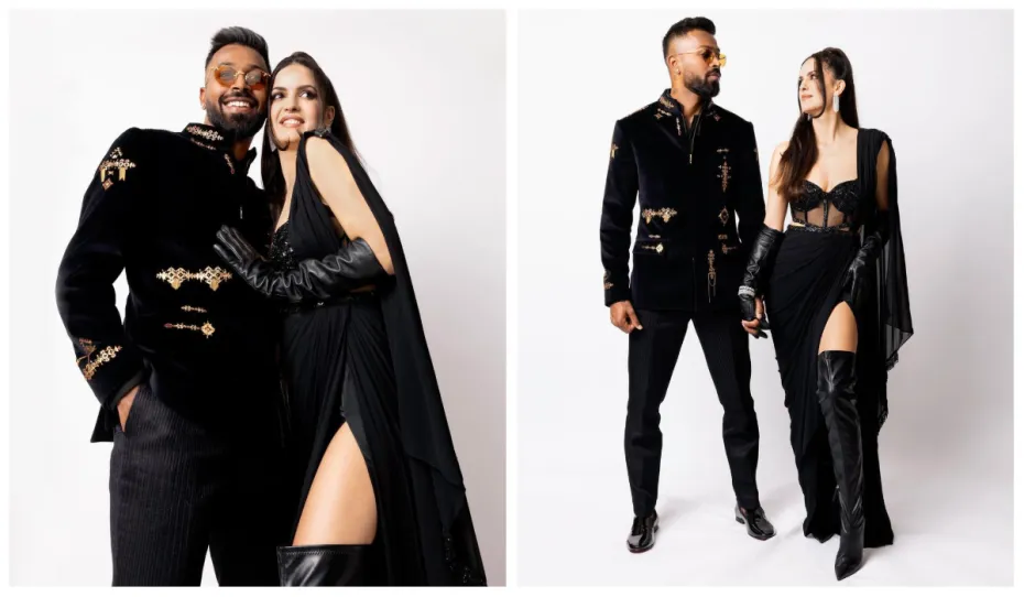 तस्वीरों में नताशा स्टेनकोविक काले रंग के कोर्सेट हाई स्लिट गाउन में लैदर शूज और ग्लब्स पहने हुए हैं, इसके साथ नताशा ने पोनीटेल की है। क्रिकेटर हार्दिक फॉर्मल शूज के साथ स्टाइलिश जैकेट और मैचिंग पैंट में बेहद स्टाइलिश लग रहे हैं। मैचिंग आउटफिट में हार्दिक और नताशा का ये लुक फैंस का फेवरेट बन गया है।