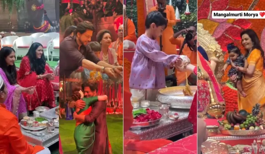 वहीं एक और इनसाइड वीडियो सामने आया है, जिसमें बॉलीवुड सेलेब्स बप्पा का दर्शन कर रहे हैं। इन वीडियो में से एक में शाहरुख खान का जलवा देखने को मिला है। वो नीता अंबानी को खुशी से गले लगाते और फिर बप्पा का परिवार के साथ दर्शन करते नजर आ रहे हैं। शाहरुख खान ने विधि-विधान के साथ गणपति भगवान की पूजा की। शाहरुख के साथ पत्नी गौरी, बेटी सुहाना, छोटा बेटा अबराम और उनकी सास एक साथ पहुंचे थे। सभी इनसाइड वीडियोज में सेलेब्स से लेकर अंबानी परिवार के लोग ट्रेडिशनल कपड़ों में तैयार नजर आए हैं।