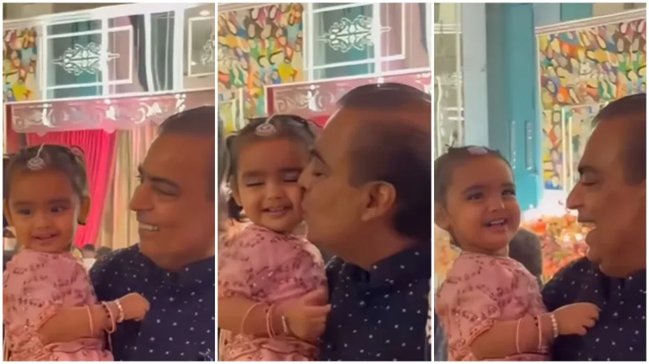मुकेश अंबानी और नीता अंबानी के छोटे बेटे अनंत अंबानी 12 जुलाई को मंगेतर राधिका मर्चेंट संग सात फेरे लेंगे। वहीं दोनों की शादी के फंक्शन शुरू हो चुके हैं। 3 जुलाई को मामेरु रस्म के बाद 4 जुलाई को गरबा का आयोजन किया गया। इसके बाद शुक्रवार यानी 5 जुलाई को राधिका-अनंत की ग्रैंड संगीत सेरेमनी आयोजित हुई, जिसकी तस्वीरें और वीडियोज अब सोशल मीडिया पर छाए हुए हैं। इसी बीच इस सेरेमनी से एक नया वीडियो सामने आया है, जिसमें मुकेश अंबानी अपनी लाडली नातिन संग खेलते नजर आ रहे हैं। नानू संग नातिन का ये क्यूट अंदाज लोगों का दिल जीत रहा है।