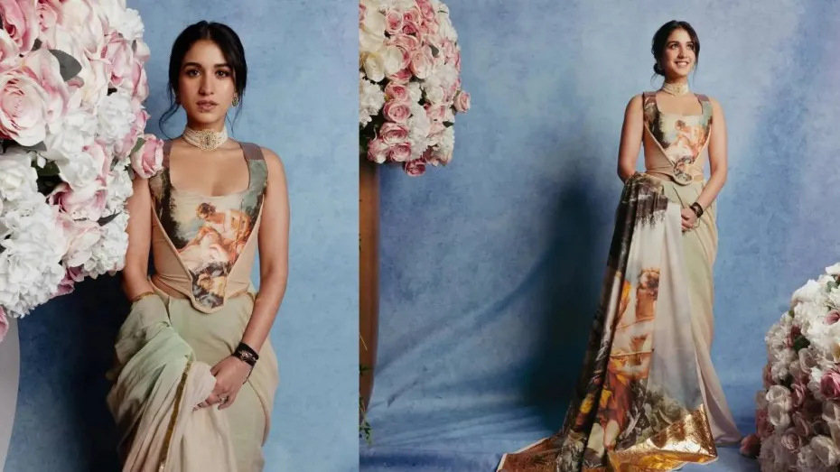 राधिका हमेशा ही अपने कपड़ों में बारीक चीजों का ध्यान रखती हैं और इसी से लोगों का ध्यान खींचती हैं। उन्हें कोई भी आम सी दिखने वाली चीज पसंद नहीं आती। वो हमेशा कुछ अलग और नया चुनती हैं। इस बार भी उन्होंने इस बात का खास ध्यान रखा है। मुंबई के गेटवे ऑफ इंडिया पर विविएन वेस्टवुड के डेब्यू फैशन शो में सितारे विदेशी स्टाइल में सजे नजर आए, लेकिन एक राधिका मर्चेंट ही थी जो सबसे इतर, बिल्कुल हटके लुक में दिखीं। उन्होंने फिर हर किसी का ध्यान खींचा। अब उनके आउटफिट के ही चर्चे हो रहे हैं। इस खास मौके के लिए उन्होंने सिंपल और एलिगेंट साड़ी को चुना। उन्होंने अपनी पेस्ट पिंक, ग्रीन गार्डन प्रिंट शिफॉन स्टाइल साड़ी को एक कॉर्सेट टॉप के साथ कैरी किया। ये कोर्सेट ही इस पुरे लुक का केंद्र रहा।