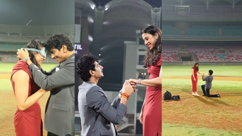 पलाश मुच्छल और स्मृति मंधाना का रिश्ता अब किसी से छिपा नहीं रह गया है। दोनों की शादी होने वाली है और ये बात अब जगजाहिर हो चुकी है। ये स्टार कपल भी एक दूसरे पर प्यार लुटाने का कोई मौक नहीं छोड़ रहा है। अब हाल ही में प्रपोजल वीडियो सामने आ गया है। पलाश मुच्छल ने अपने इंस्टाग्राम पर एक बेहद भावुक कर देने वाला वीडियो साझा किया है, जिसमें वे नवी मुंबई के ऐतिहासिक DY पाटिल स्टेडियम में टीम इंडिया की स्टार बैटर और वाइस कैप्टन स्मृति मंधाना को प्रपोज करते नजर आ रहे हैं। यही वह मैदान है, जहां भारतीय महिला टीम ने हाल ही में विमेंस वर्ल्ड कप 2025 का खिताब जीता था और पलाश ने इसी खास जगह को अपने जीवन के सबसे महत्वपूर्ण पल के लिए चुना।