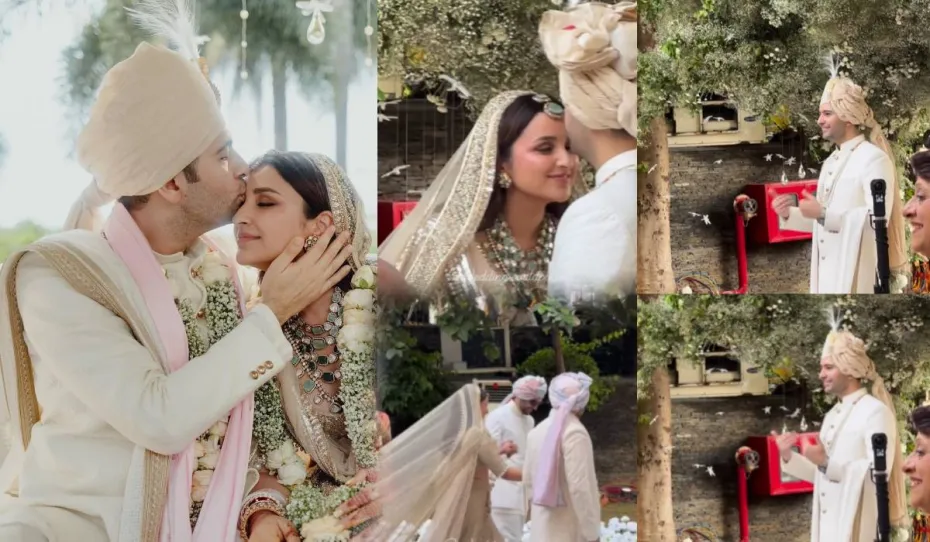 परिणीति चोपड़ा और राघव चड्ढा शादी के बंधन में बंध चुके हैं। दोनों ने 24 सितंबर, 2023 को उदयपुर के होटल लीला पैलेस में सात फेरे लिए। कपल ने पंजाबी रीति-रिवाजों के साथ शादी की, जिसकी तस्वीरें और वीडियो सोशल मीडिया पर छाए हुए हैं। दोनों की जोड़ी कमाल की लग रही है। इस शाही स्टाइल वाली शादी के कई इनसाइड वीडियो तेजी से वायरल हो रहे हैं। एक के बाद एक ऐसा वीडियो सामने आ रहा है जो फैंस का दिल जीत ले रहा है। अब एक नया वीडियो सामने आया है जिसमें कपल की क्यूटनेस आपको इस न्यूली वेड जोड़े का दीवाना बना देगी।