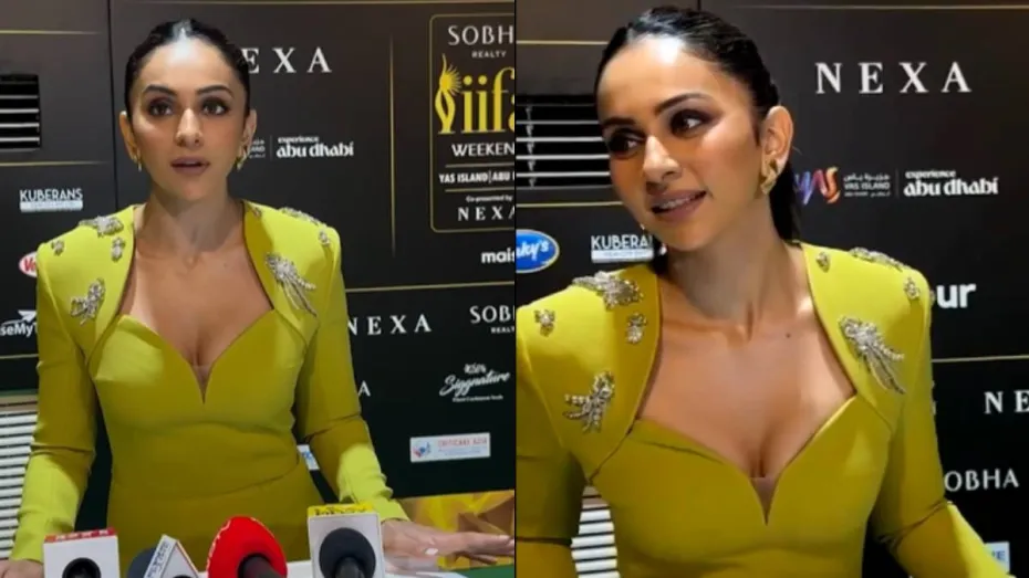 अबू धाबी में IIFA 2024 आयोजित किया गया, जिसके चलते इन दिनों आधा बॉलीवुड अबू धाबी में है। बॉलीवुड के तमाम सितारे इस इवेंट में शामिल हुए, जिनमें अभिनेत्री रकुल प्रीत सिंह का नाम भी शामिल है। रकुल प्रीत सिंह ने ग्रीन कलर के आउटफिट में इवेंट में शिरकत की, जिसमें वह बेहद खूबसूरत लग रही थीं। इस बीच रकुल का एक वीडियो चर्चा में है, जिसमें वह ग्रीन कारपेट पर अपनी फिल्म 'दे दे प्यार दे 2' को लेकर बात करती नजर आ रही हैं। इसी दौरान रकुल से उनके ससुर और पूजा एंटरटेनमेंट के ओनर वासु भगनानी को लेकर सवाल किया गया। ससुर को लेकर पूछे गए सवाल पर रकुल प्रीत सिंह का रिएक्शन अब वायरल हो रहा है।