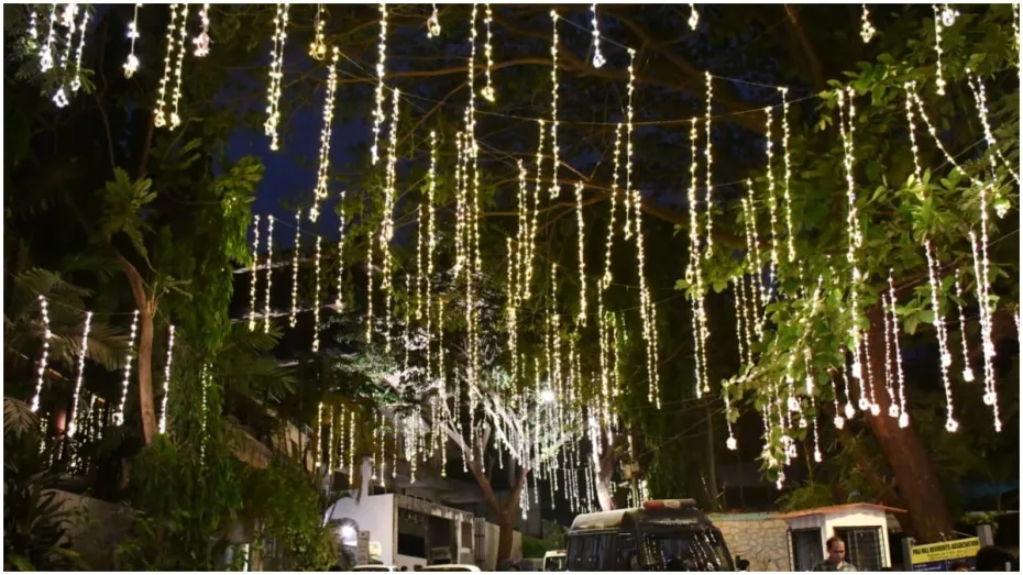 दोनों स्थानों के बीच के हिस्से को रंग-बिरंगी झालरों से सजाया गया है। बारात की एक इमारत से दूसरी इमारत में सुचारू आवाजाही सुनिश्चित करने के लिए 14 अप्रैल को पुलिसकर्मियों की एक टुकड़ी को तैनात किया जाएगा।