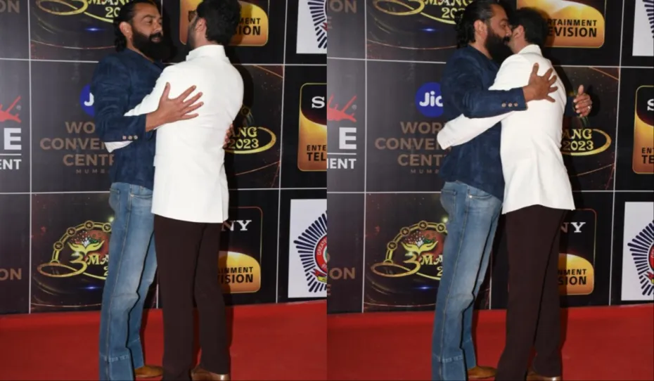 वीडियो में बॉबी नेवी ब्लू ब्लेजर को ब्लू डेनिम के साथ पेयर किया था। बॉबी देओल इस लुक में हैंडसम लग रहे थे। दूसरी ओर रणबीर ब्लैक कलर की पैंट के साथ वाइट कोट में नजर आए। वायरल वीडियो में आप देख सकते हैं कैसे रणबीर कपूर और बॉबी देओल एक-दूसरे को कसकर गले लगाते हैं और वहीं बीच इवेंट में एक-दूसरे के कान में फुसफुसाते दिखे। रणबीर कपूर और बॉबी देओल ने कैमरे के सामने जमकर पोज भी दिए।