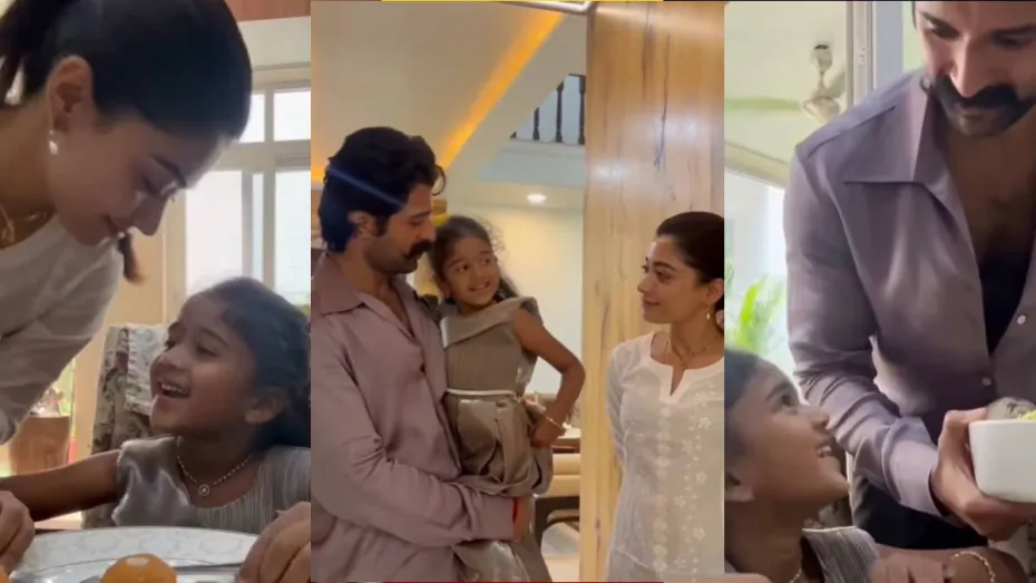 रश्मिका मंदाना और विजय देवरकोंडा बीते दिनों अपनी शादी को लेकर खूब सुर्खियां बटोरते रहे। बीते 26 फरवरी को को दोनों ने उदयपुर में आयोजित एक निजी समारोह में शादी की थी। इसके बाद दोनों ने हैदराबाद में ग्रांड रिसेप्शन भी दिया था जिसमें साउथ सिनेमा समेत बॉलीवुड के भी कई दिग्गज सितारे शामिल हुए थे। लेकिन इसी दौरान रश्मिका और विजय की एक नन्ही फैन गर्ल ने वीडियो शेयर किया था जिसमें उसने उसे शादी में न बुलाने की क्यूट शिकायत भी लगाई थी। छोटी बच्ची का ये वीडियो खूब वायरल रहा था अब रश्मिका के साथ ही विजय ने भी उसे पार्टी देने का वादा किया था। अब इन दोनों स्टार्स ने उस नन्ही फैन को अपने घर लंच पर बुलाया और उसका मनपसंद खाना भी खिलाया। अब इसका भी एक वीडियो वायरल हो रहा है जिसमें रश्मिका और विजय अपने फैन्स के प्रति दिखाए प्यार और सम्मान के लिए तारीफें बटोर रहे हैं।