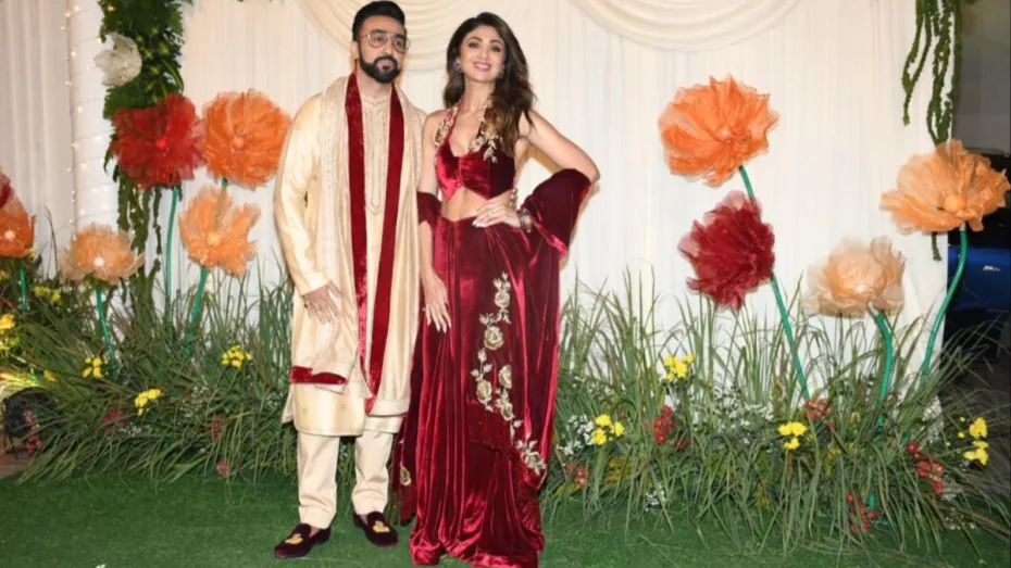 शिल्पा शेट्टी की दिवाली पार्टी 2023 में एक्ट्रेस को उनके पति राज कुंद्रा के साथ कैमरे के सामने शानदार पोज दिए। शिल्पा शेट्टी रेड कलर के ट्रेडिशनल लुक में बेहद खूबसूरत लग रही थीं। वहीं राज ने क्रीम और रेड कलर के ट्रेडिशनल ड्रेस में नजर आए।