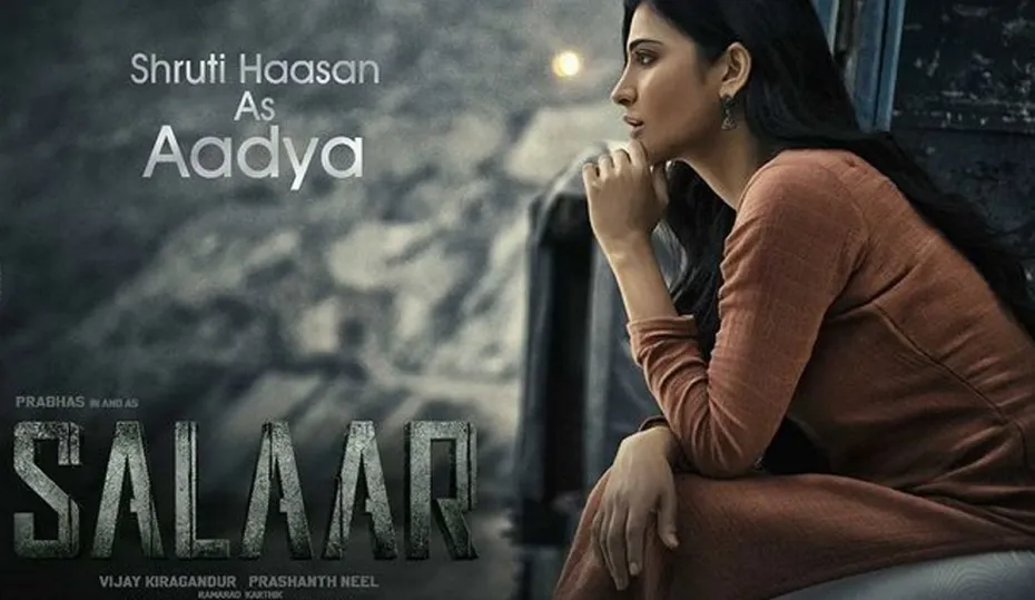 श्रुति हासन प्रशांत नील के निर्देशन में बनने वाली आगामी फिल्म 'सालार' में आद्या नाम की भूमिका निभा रही हैं। हालांकि मेकर्स ने पोस्टर में ज्यादा खुलासा नहीं किया है, श्रुति हासन एक साधारण लंबी बाजू की पोशाक में नजर आ रही हैं और वह आसमान की ओर देख रही हैं।