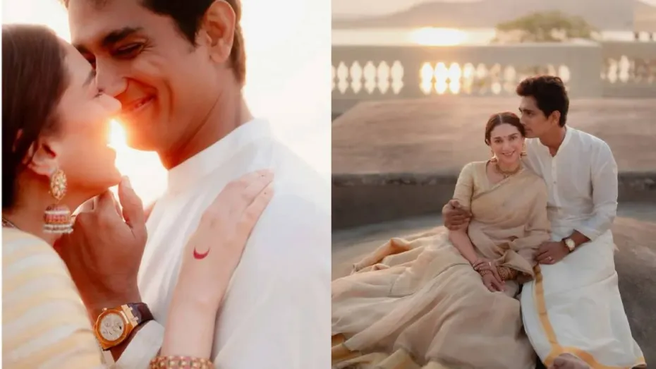 बॉलीवुड का एक और खूबसूरत कपल शादी के बंधन में बंध गया है। बॉलीवुड एक्ट्रेस अदिति राव हैदरी ने एक्टर सिद्धार्थ से शादी कर ली है। अदिति राव हैदरी ने इसकी तस्वीरें अपने इंस्टाग्राम पर शेयर कर फैन्स को इसकी जानकारी दी है। अब सिद्धार्थ की उनकी पत्नी अदिति राव हैदरी के साथ कुछ तस्वीरें सोशल मीडिया पर वायरल हैं। इन तस्वीरों में सिद्धार्थ ने जो घड़ी पहनी है उसकी कीमत 37 लाख रुपयों से भी ज्यादा बताई जा रही है। अब इस घड़ी की कीमतें जान फैन्स भी चौंक गए हैं।