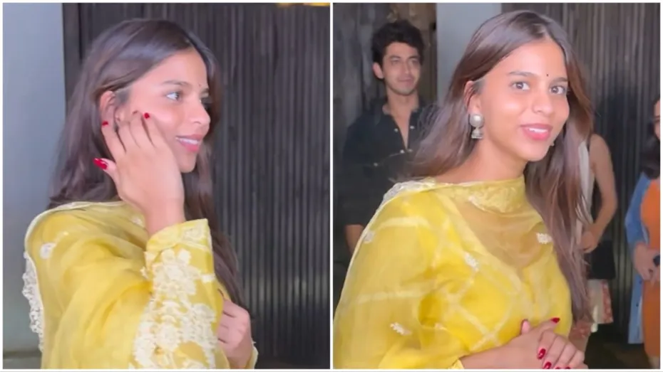 जी हां, हमेशा बोल्ड और ग्लैमरस लुक में नजर आने वाली सुहाना जब हाल ही में स्पॅाट हुई तो उन्हें एथनिक लुक में देख बस सब देखते ही रह गए। सुहाना खान इस दौरान पीले रंग के खूबसूरत कढ़ाई वाले सूट सलवार में नजर आई। वहीं खुले बाल और कान में झुमके पहन सुहाना ने अपने लुक को कंप्लीट किया। इस लुक में सुहाना जहां बेहद खूबसूरत दिख रही थीं, वहीं दूसरी तरफ उनकी स्माइल भी फैंस का दिल जीत रही थी। पैप्स को पोज देते वक्त सुहाना के चेहरे पर एक अलग ही खुशी देखने को मिल रही थी।
