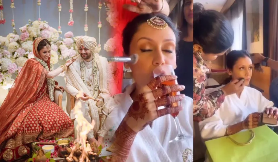 हाल में ही दृषा अचार्या के ब्राइडल अवतार के लिए तैयार होने वाला वीडियो सामने आया। इस वीडियो में दृषा काफी चिल और रिलैक्स नजर आ रही हैं। सामने आए वीडियो में दृषा वाइट बाथ रोब में अपने बाल और मेकअप करा रही हैं। वीडियो में वो मेकअप आर्टिस्ट को गाइड कर रही हैं। वहीं वो अपनी ज्वैलरी भी साथ-साथ देख रही हैं। सबसे कूल बात इस वीडियो में ये रही कि वो तैयार होते-होते वाइन पीती नजर आती हैं। हाथ में वाइन ग्लास लिए वो चिल मूड में क्यूट रिएक्शन देती हैं।