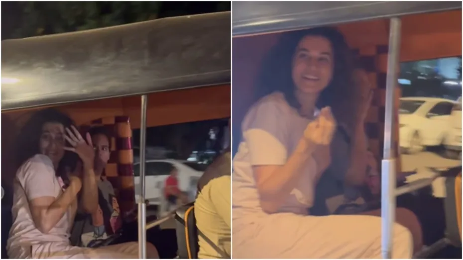 वायरल हो रहे वीडियो में आप देख सकते हैं कि मुंबई की सड़कों पर तापसी पन्नू अपनी किसी दोस्त के साथ ऑटो रिक्शा पर बैठकर मस्ती भरी राइड ले रही हैं। जैसे ही पैपराजी उन्हें देखते हैं तो उनकी तस्वीरें कैमरे से कैप्चर करने लगते हैं। इस पर एक्ट्रेस तुरंत ही अपना चेहरा छिपाने लग जाती हैं। वीडियो में एक्ट्रेस कह रही हैं कि, ‘अरे भाई साहब आप क्या कर रहे हो?’ इसके बाद तापसी ऑटो वाले को जल्दी चलाने के लिए कहती हैं।