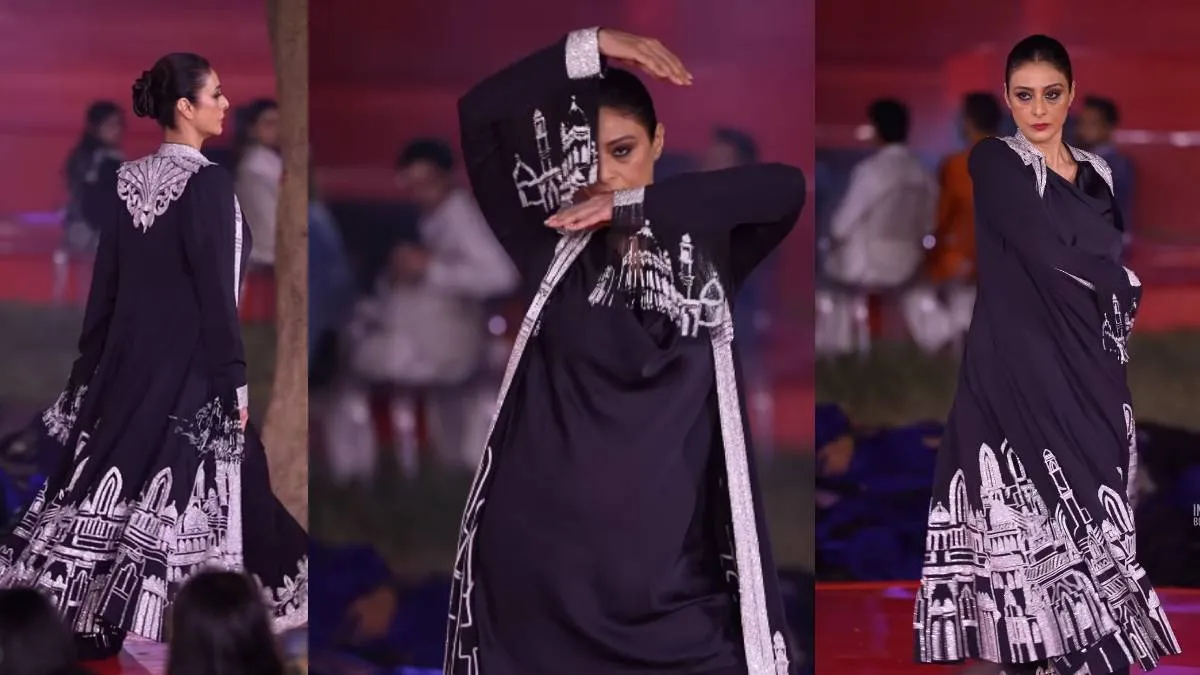 दिग्गज फैशन डिजाइनर्स के लिए शोस्टॉपर के रूप तब्बू में काले रंग के थ्री पीस में नजर आईं। उन्होंने सैटिन फिनिश वाले पजामे के साथ ब्लैक कुर्ता कैरी किया था, जिसके ऊपर हैवी केप ने उनके लुक को पूरा किया था। तब्बू के केप पर बारिक स्टोन वर्क किया गया था, जिसे वो फैलाकर फ्लॉन्ट कर रही थीं। उनकी स्लीव पर भी स्टोन वर्क किया गया था। एक्ट्रेस की ड्रैमेटिक एंट्री हुई और इसके बाद वो कई डांस मूव करते हुए रैंप पर आईं। इसके बाद उन्होंने अपने केप को ट्विर्ल किया और इसकी बाजुओं को भी चेहरे के सामने रख के दिखाती दिखीं।