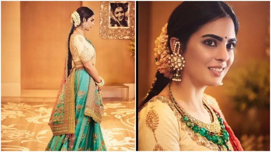 अंबानी परिवार में एक बार फिर जश्न का माहौल है। आखिर मुकेश अंबानी और नीता अंबानी के छोटे बेटे अनंत अंबानी 12 जुलाई को मंगेतर राधिका मर्चेंट संग शादी के बंधन में जो बंध रहे हैं। दोनों की शादी के फंक्शन जोरों-शोरों से शुरू हो चुके हैं। 3 जुलाई को मामेरु रस्म के बाद 4 जुलाई को गरबा का आयोजन किया गया। इसके बाद शुक्रवार यानी 5 जुलाई को राधिका-अनंत की ग्रैंड संगीत सेरेमनी आयोजित हुई, जिसकी तस्वीरें और वीडियोज अब सोशल मीडिया पर छाए हुए हैं। वहीं बीते दिन कपल की हल्दी सेरेमनी थी, जिसमें अनंत की होने वाली दुल्हनियां हर बार कि तरह अपने लुक की वजह से छा गईं। वहीं आज कपल की मेहंदी सेरेमनी थी, जिससे ईशा अंबानी का लुक सामने आ गया है। इस लुक में ईशा गजब की खूबसूरत दिख रही हैं।