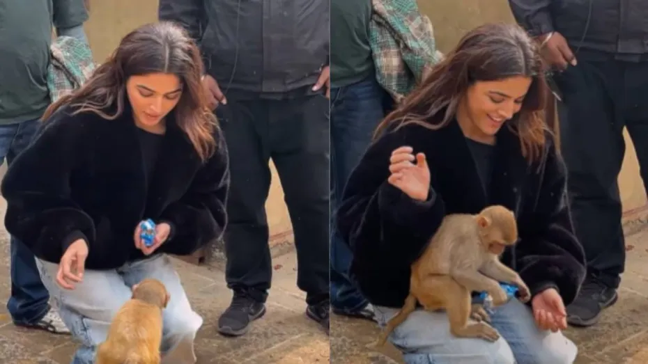 वरुण धवन की 'बेबी जॉन' फेम वामिका गब्बी इन दिनों काफी चर्चा में हैं। अपनी हरी-हरी आंखों से फैंस का दिल चुरा रहीं वामिका गब्बी का अंदाज फैंस को बेहद पसंद आ रहा है। वामिका पंजाबी, साउथ के साथ अब बॉलीवुड में भी अपने आप को स्थापित करने की कोशिश में जुट गई हैं। इस बीच वामिका का एक वीडियो भी सुर्खियों में है। इस वीडियो में बेबी जॉन एक्ट्रेस एक बंदर के बच्चे को दुलारती और उसे बिस्कुट खिलाती नजर आ रही हैं।