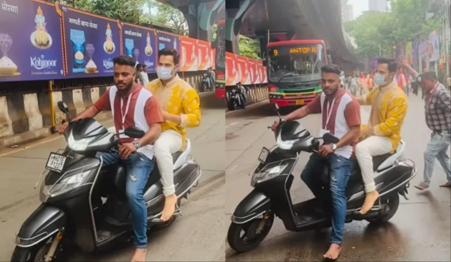 बॉलीवुड एक्टर वरुण धवन गणेशोत्सव के तीसरे दिन शुक्रवार 29 अगस्त को मुंबई के लालबागचा राजा पंडाल में आशीर्वाद लेने पहुंचे। सोशल मीडिया पर एक्टर की कई तस्वीरें और वीडियो सामने आए हैं। हालांकि, एक वीडियो ने सोशल मीडिया यूजर्स के बीच हलचल मचा है जो सभी का ध्यान खींच रहा है, जिसमें वह एक पैपराजी के साथ स्कूटी पर पीछे बैठे नजर आ रहे हैं। अब उन्हें सोशल मीडिया पर हेलमेट न लगाने के लिए ट्रोल किया जा रहा है।