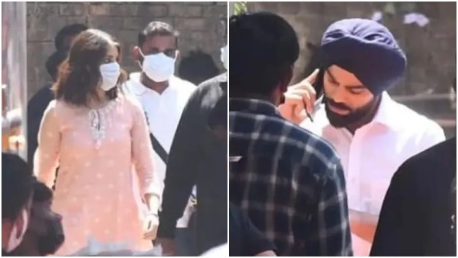 अनुष्का शर्मा और विराट कोहली की लव स्टोरी एक शैंपू के एड के सेट से शुरू हुई थी। इस विज्ञापन के शूट के लिए दोनों पहली बार मिले और दोनों के बीच प्यार की शुरुआत हुई। इसके बाद विराट और अनुष्का ने साथ में कई एड किये, जिसमें मान्यवर के एड भी शामिल थे जो शादी से पहले और शादी के बाद शूट हुए और खूब वायरल हुए। अब विराट और अनुष्का एक बार फिर से एक साथ सेट पर स्पॉट किए गए, ऐसा लग रहा है कि दोनों फिर से किसी विज्ञापन की शूटिंग के लिए साथ आए हैं। जो तस्वीरें वायरल हुई हैं उसमें भारतीय क्रिकेट टीम के पूर्व कप्तान काली पगड़ी, सादी पिंक शर्ट और बेज रंग की पैंट पहने नजर आ रहे थे। अनुष्का ने हल्के गुलाबी रंग का सूती कुर्ता पहना था और सेट पर सफेद रंग का मास्क पहना था।