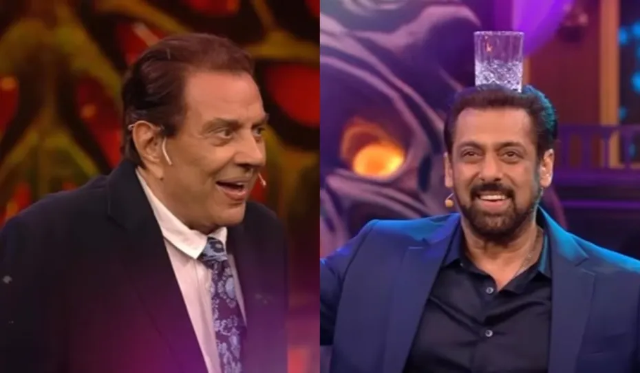 'बिग बॉस 17' के नए प्रोमो वीडियो में धर्मेंद्र को बिग बॉस के मंच पर सलमान खान, मीका सिंह, सोहेल खान और अरबाज खान के साथ मस्ती करते हुए दिखाया गया है। वहीं धर्मेंद्र को सलमान खान के साथ बॉबी देओल की फिल्म 'एनिमल' के ट्रेंडिंग गाने जमाल कुडू पर डांस करते हुए देखा जा सकता है। धर्मेंद्र ने गिलास को मुंह से पकड़ लिया और उसे बैलेंस करने की कोशिश की। धर्मेंद्र ने इसे अपनी हथेली पर संतुलित करने की भी कोशिश की जबकि सलमान को अपने सिर पर कांच की गिलास को संतुलित करने की कोशिश करते देखा गया। सोहेल खान और मीका सिंह ने भी ये स्टेप की।