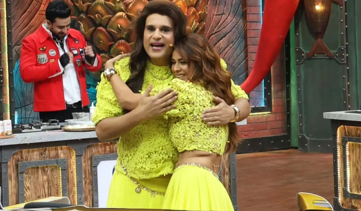 लाफ्टर शेफ्स 3 के मेकर्स ने अपने इंस्टाग्राम पर एक कुछ मजेदार वीडियो और फोटोज पोस्ट किए हैं, जो लोगों को बहुत पसंद आ रहे हैं। अपकमिंग एपिसोड के मजेदार प्रोमो वीडियो दर्शकों के बीच चर्चा में बने हुए हैं, जिसमें कॉमेडियन, डांसर और होस्ट कृष्णा अभिषेक 'निया शर्मा 2.0' के अवतार में नजर आ रहे हैं। वीडियो में कृष्णा भारतीय टेलीविजन एक्ट्रेस और मॉडल निया शर्मा की नकल और मिमिक्री करते हुए नजर आ रहे हैं, जहां दोनों की ड्रेस से लेकर हेयरस्टाइल तक, सबकुछ बिल्कुल एक जैसा था। कृष्णा अभिषेक एकदम निया शर्मा की कार्बन कॉपी लग रहे थे। दोनों पीले रंग की ड्रेस पहने नजर आए।
