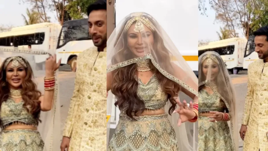 बता दें राखी का एक वीडियो वायरल हो रहा है, जिसमें राखी दुल्हन बनी नजर आ रही है।बता दें इस वीडियो में राखी आदिल नहीं किसी और के साथ नजर आ रही हैं। इस वीडियो में राखी ने क्रीम और लाइट पिंक कलर का लहंगा पहना हुआ है। उनके साथ एक शख्स क्रीम कलर की शेरवानी में नजर आ रहा है। राखी उस शख्स का हाथ पकड़ी नजर आ रही हैं। वही राखी इस वीडियो में बोल रही है कि एक बार शादी की है, अब दुबारा कभी नहीं करुंगी। मेरा एक ही दूल्हा है वो भी जेल में है। राखी दुल्हन की तरह अपने आने वाले म्यूजिक वीडियो के लिए सजी हैं।