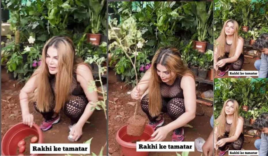 राखी सावंत का वीडियो पैपराजी ने शेयर किया है। इस वीडियो में राखी सावंत गमले में टमाटर का पैधा लगाते नज आ रही हैं। इससे ठीक पहले राखी सावंत गमले में 4-5 टमाटर डालती, उसके ऊपर मिट्टी डालती हैं और फिर पौधा लगाती हैं। इसके बाद राखी सावंत कहती हैं कि अब 15 दिन में इसमें टमाटर आ जाएंगे। उनके पास बैठा माली भी कहता है कि बस 15 दिनों में ही पेड़ में टमाटर लग जाएंगे।