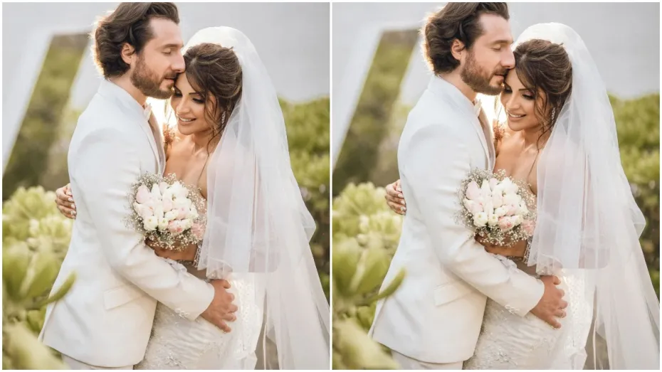 सफेद ब्राइडल ड्रेस में शमा काफी खूबसूरत लग रही हैं। वहीं जेम्स भी व्हाइट सूट में बेहद हैंडसम लग रहे हैं।
