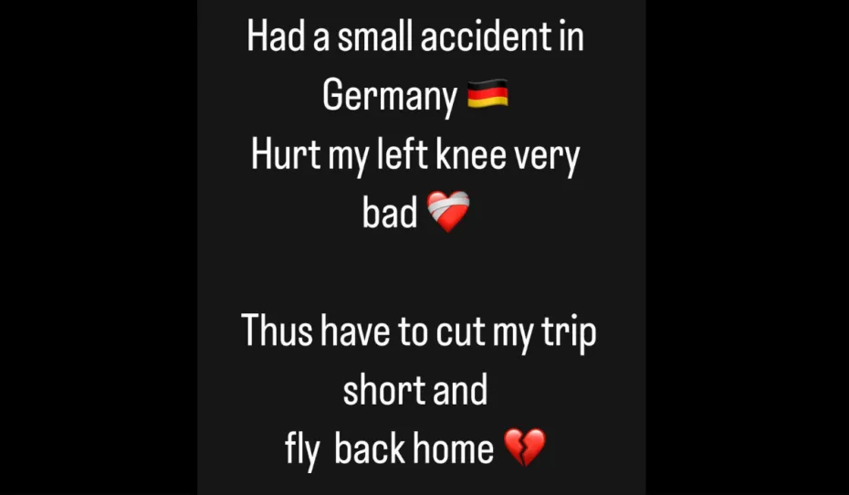 ट्रैवल लवर मुनमुन दत्ता (Munmun Dutta) ने लगभग एक हफ्ते पहले अपनी यूरोप ट्रिप शुरू की थी। वो अभी स्विट्जरलैंड और जर्मनी घूमी हैं, लेकिन एक्ट्रेस जर्मनी में एक्सीडेंट का शिकार हो गईं। अपनी इंस्टाग्राम स्टोरी में मुनमुन दत्ता ने बताया, 'जर्मनी में मेरा एक छोटा-सा एक्सीडेंट हो गया था, मेरे बाएं घुटने में बहुत चोट लगी है। इसलिए मुझे अपनी ट्रिप को बीच में छोड़कर घर वापस आना पड़ रहा है।' इसके साथ उन्होंने टूटे हुए दिल वाली इमोजी भी लगाई है।