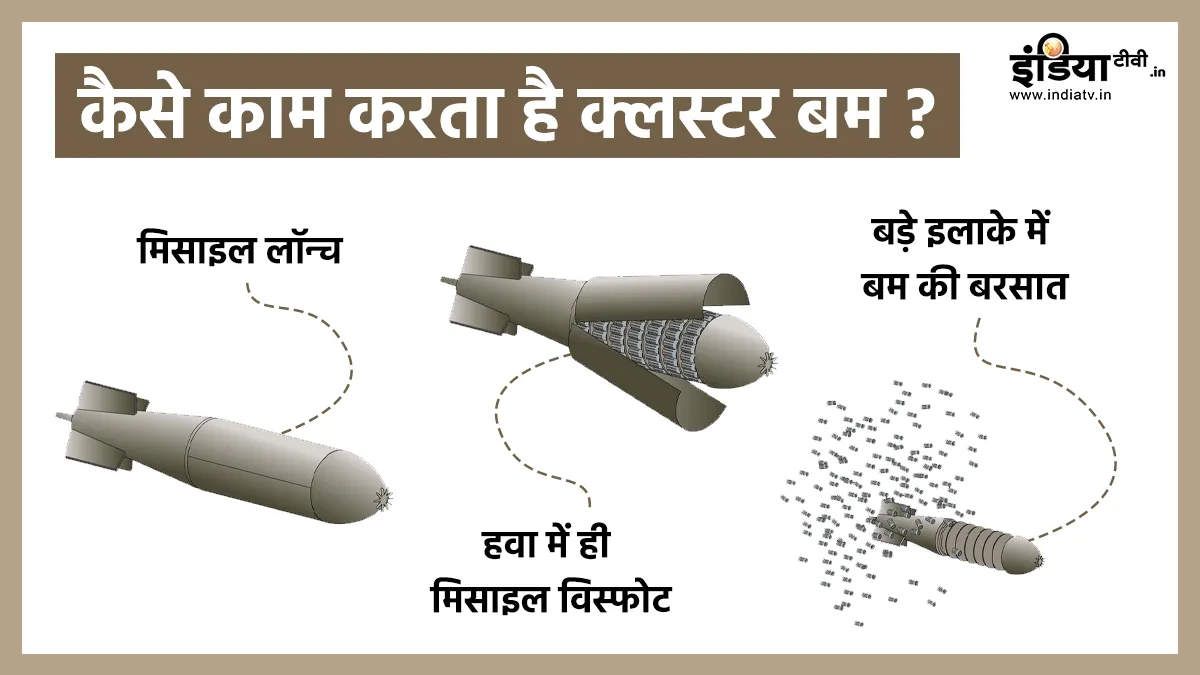 इजरायल और ईरान के बीच युद्ध में ईरान ने क्लस्टर बम का उपयोग किया है। यह बम आम लोगों को बड़े पैमाने पर नुकसान पहुंचाने के लिए जाना जाता है। इजरायली सेना की तरफ से क्लस्टर बम का इस्तेमाल होने की पुष्टि हुई है। आईडीएफ ने कहा कि 19 जून को ईरान की तरफ से दागी गई कम से कम एक मिसाइल में क्लस्टर बम वारहेड था। दोनों देशों के बीच इस युद्ध में पहली बार इस बम का इस्तेमाल हुआ है। यहां हम बता रहे हैं कि यह कितना खतरनाक है और इस पर बैन क्यों लगाया गया है।