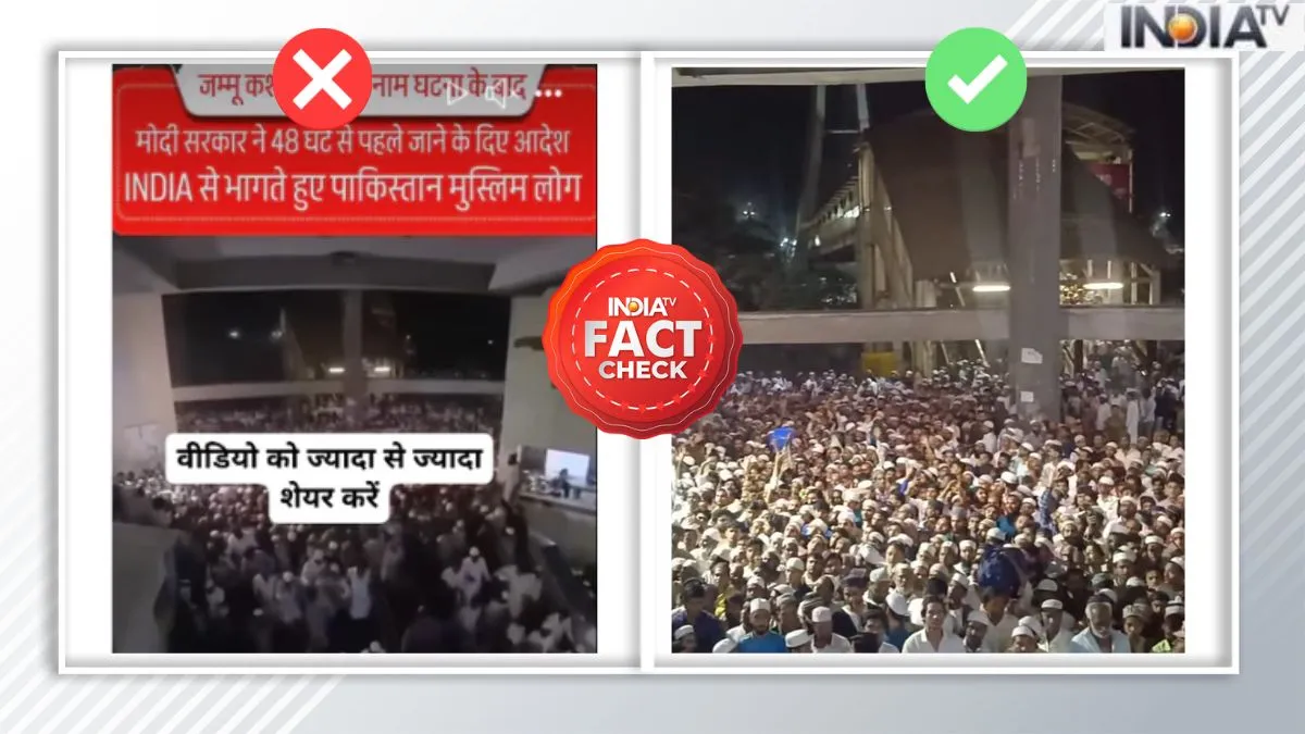 पहलगाम आतंकी घटना से पूरे देश में रोष व्याप्त है। ऐसे में आतंकी घटना के बाद भारत सरकार ने पाकिस्तान के खिलाफ सख्त एक्शन लेते हुए सभी पाकिस्तानियों के वीजा 27 अप्रैल से रद्द कर दिए, वहीं, मेडिकल वीजा को 29 अप्रैल तक वैध रखा। इसके बाद सभी पाकिस्तानी वापस जा रहे, सभी राज्यों की पुलिस उन्हें ढूंढकर वापस भेजने में लगी हुई है। अब तक सैकड़ों पाकिस्तानी भारत से वापस पाकिस्तान लौट चुके हैं। इसी बीच सोशल मीडिया पर एक वीडियो को लेकर दावा किया गया कि भारत सरकार के फैसले के बाद पाकिस्तानियों के कुछ वीडियो वायरल हो रहे, जिसमें हजारों की ताददा दिख रही है, लेकिन इंडिया टीवी के फैक्ट चेक में यह दावा भ्रामक पाया गया।