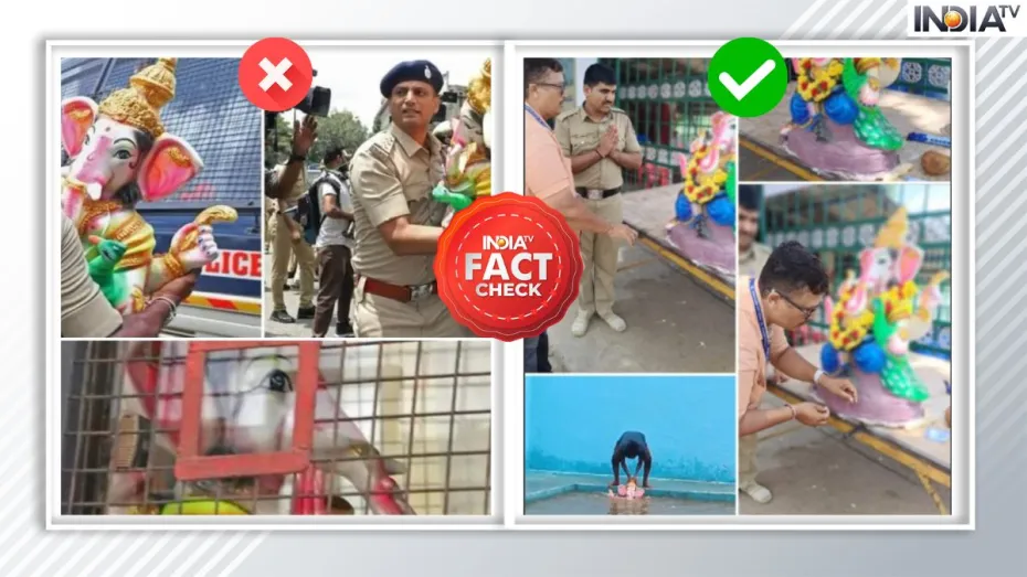 Fact Check: इन दिनों सोशल मीडिया पर किसी भी खबर को गलत दावे के साथ पेश करना बहुत ही आसान होता है। हालांकि इसका बहुत ज्यादा नुकसान भी होता है और ये खतरनाक है। फेक खबरें सोशल मीडिया पर तेजी से वायरल हो जाती हैं। इन्हीं फेक न्यूज से आपको सावधान करने के लिए हम लेकर आते हैं India TV फैक्ट चेक। सोशल मीडिया पर एक तस्वीर काफी तेजी से वायरल हो रही है, जिसमें यह दावा किया जा रहा है कि कर्नाटक में भगवान गणेश की प्रतिमा को गिरफ्तार कर लिया गया। वहीं अब ये तस्वीर सोशल मीडिया पर तेजी से वायरल हो रही है। हालांकि, India TV ने जब इस दावे का फैक्ट चेक किया तो ये पूरी तरह से झूठा साबित हुआ है।
