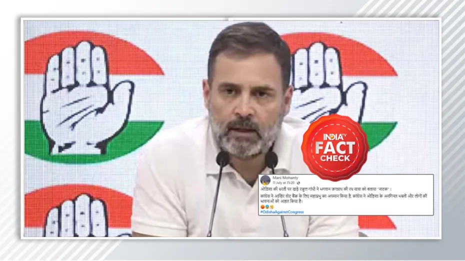 Fact Check: इन दिनों सोशल मीडिया पर किसी भी बात को गलत दावे के साथ पेश करना बहुत ही आसान है। हालांकि इसका बहुत ज्यादा नुकसान भी होता है और ये खतरनाक है। फेक खबरें सोशल मीडिया पर तेजी से वायरल हो जाती हैं। इन्हीं फेक न्यूज से आपको सावधान करने के लिए हम लेकर आते हैं India TV फैक्ट चेक। सोशल मीडिया पर इन दिनों एक पोस्ट काफी तेजी से वायरल हो रही है, जिसमें यह दावा किया जा रहा है कि 'कांग्रेस नेता राहुल गांधी ने ओडिशा की जगन्नाथ रथयात्रा को नाटक' बताया है।