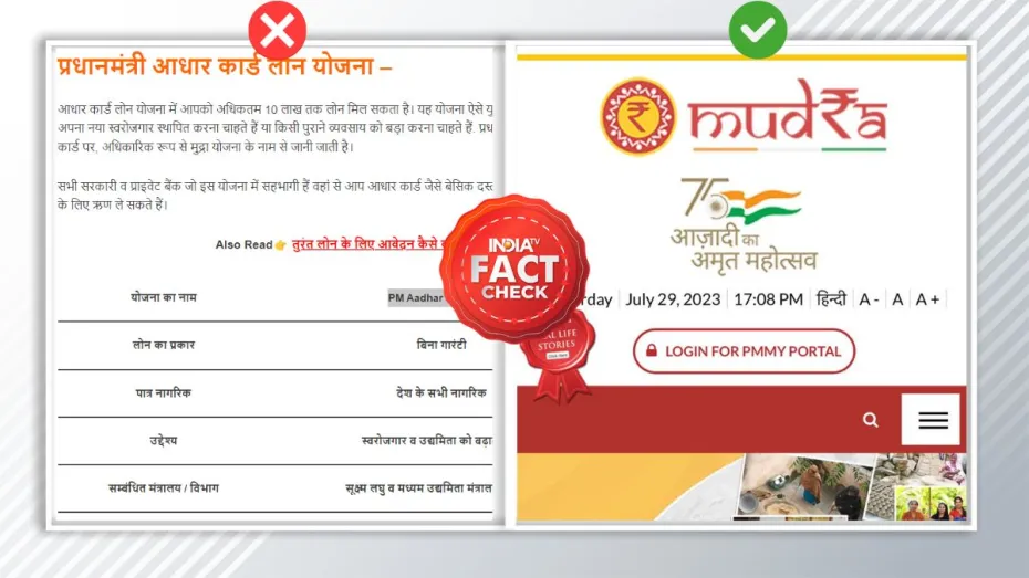 India TV Fact Check: भारत युवाओं का देश है। दुनिया भी इस बात को समझती है। भारत सरकार इसका फायदा उठाने के लिए और देश की तरक्की में योगदान सुनिश्चित करने के लिए युवाओं को अपना रोजगार करने को लेकर प्रेरित कर रही है। इसके लिए केंद्र सरकार के तरफ से कई योजनाएं भी चलाई जा रही है। इन सबके बीच एक खबर वायरल हो रही है, जिसमें यह दावा किया गया है कि केंद्र सरकार आधार कार्ड पर लोन दे रही है। आज हम उस दावे का फैक्ट चेक करेंगे और यह जानेंगे कि क्या सच में केंद्र सरकार के तरफ से ऐसी कोई योजना चलाई जा रही है।