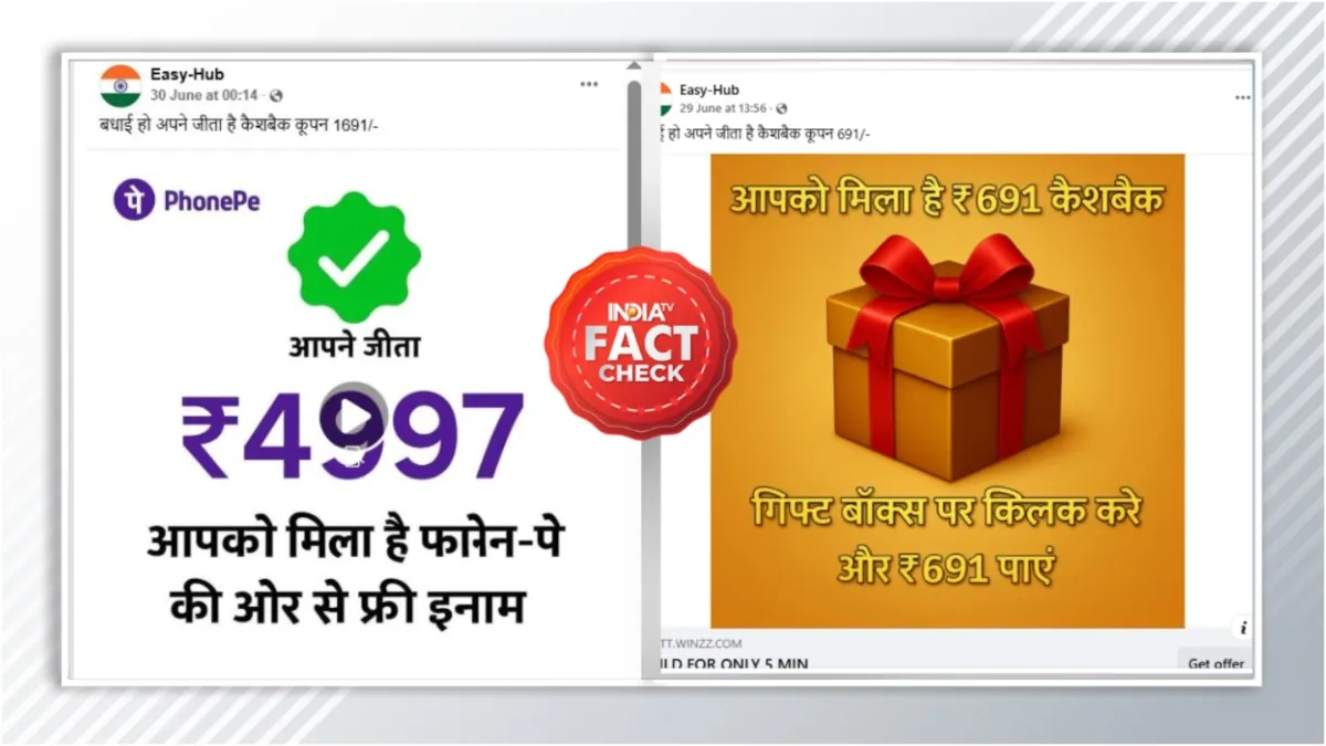 सोशल मीडिया पर पिछले कुछ दिनों ने कैशबैक के नाम पर कुछ लिंक्स तेजी से वायरल हो रहे हैं। इन लिंक्स को शेयर करके यूजर्स दावा कर रहे हैं कि पोस्ट में मौजूद तस्वीर को छूने से कैशबैक मिलेगा। लेकिन जब इंडिया टीवी ने इस दावे की पड़ता की तो हमने पाया कि यह दावा पूरी तरह गलत और फर्जी है। फेक लिंक्स को यूजर के साथ धोखाधड़ी करने के मकसद से वायरल किया जा रहा है। बता दें कि हैकर्स डेटा को चोरी करने और लोगों को आर्थिक नुकसान पहुंचाने के इरादे से इस तरह के फेक पोस्ट वायरल करते हैं।