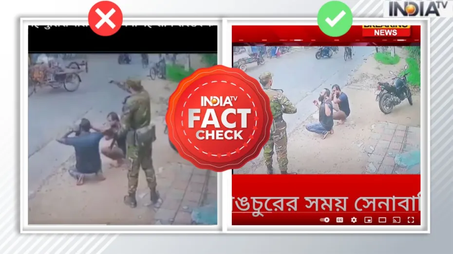Fact Check: मौजूदा समय में आए दिन कुछ न कुछ वायरल होता ही रहता है। सोशल मीडिया के अलग-अलग प्लेटफॉर्म पर ऐसे वायरल वीडियो की कोई गिनती नहीं है, जिनका सच्चाई से मीलों दूर तक कुछ भी लेना देना नहीं होता। इन्हीं फेक न्यूज से आपको सावधान करने के लिए हम लेकर आते हैं India Tv फैक्ट चेक। ऐसे ही सोशल मीडिया पर सेना के सामने घुटने टेकते दो लोगों का एक वीडियो गलत दावे से खूब वायरल हो रहा है। जब हमने इसका फैक्ट चेक किया तो सच कुछ और ही निकला।