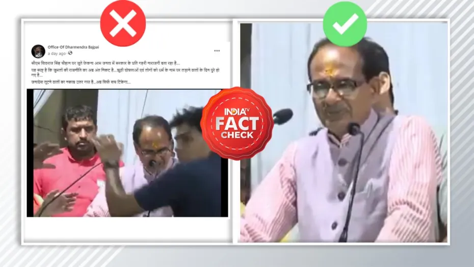 India TV Fact Check: मध्य प्रदेश में विधानसभा चुनाव होने वाले हैं। पूरे राज्य में चुनावी माहौल सेट हो चुका है। इसी के साथ इंटरनेट पर भी चुनावी सामग्री फैलाई जाने लगी है। एक दूसरी पार्टी के समर्थक सोशल मीडिया पर फर्जी और भ्रामक खबरें और वीडियो शेयर कर रहे हैं। इसी क्रम में एक वीडियो हमारे सामने आया, जिसमें दावा किया जा रहा है कि मध्य प्रदेश के मुख्यमंत्री शिवराज सिंह चौहान पर जूता फेंका गया है। जब हमने इस वीडियो का फैक्ट चेक किया तो पता चला कि ये वीडियो काफी पुराना है।
