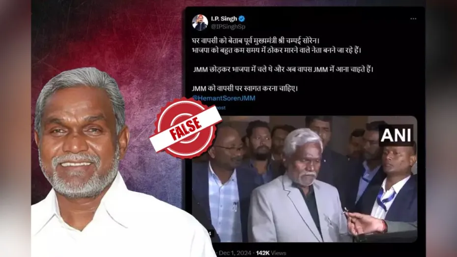 Originally Fact Checked by Boom: झारखंड विधानसभा चुनाव में जीत के बाद 28 नवंबर 2024 को हेमंत सोरेन ने चौथी बार झारखंड के मुख्यमंत्री के तौर पर शपथ ली। इस बीच सोशल मीडिया पर भाजपा नेता और झारखंड के पूर्व मुख्यमंत्री चंपई सोरेन का एक वीडियो वायरल हो रहा है। वीडियो को इस दावे के साथ शेयर किया जा रहा है कि भाजपा नेता चंपई सोरेन अब झारखंड मुक्ति मोर्चा (जेएमएम) में दोबारा घर वापसी की तैयारी कर रहे।