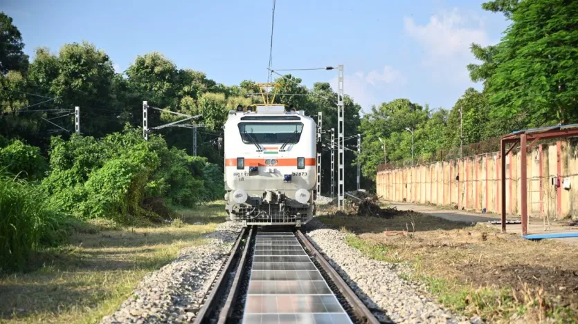 भारतीय रेल ने उत्तर प्रदेश के वाराणसी में पटरियों के बीच सोलर पैनल लगाकर बिजली उत्पादन शुरू किया है। रेलवे ने वाराणसी के लोकोमोटिव कारखाने- बनारस लोकोमोटिव वर्क्स के कैंपस में स्थित पटरियों पर सोलर पैनल लगाकर चालू कर दिए हैं। बताते चलें कि देश में ऐसा पहली बार हुआ है जब पटरियों पर सोलर पैनल लगाकर बिजली पैदा की जा रही है।