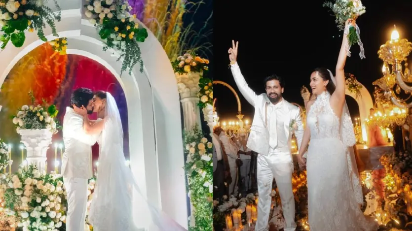 दोनों की एक तस्वीर सोशल मीडिया पर सामने आई जिसमें वे चर्च में अपनी शादी के दौरान एक किस करते हुए देखे गए। फोटो में कीर्ति और एंटनी सफेद जोड़े में ट्विनिंग करते नजर आ रहे हैं। जहां अभिनेत्री लंबी ट्रेल वाले सफेद गाउन में सबसे सुंदर लग रही थीं, वहीं एंटनी उसी रंग के सूट में आकर्षक लग रहे थे।