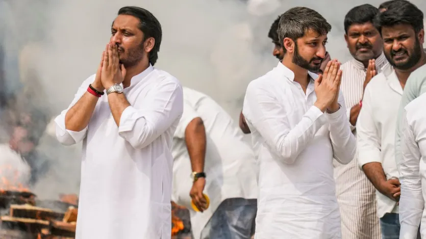 मां की सिसकियों के बीच पार्थ और जय पवार ने हाथ पकड़कर अपने पिता को मुखाग्नि दी। इसके बाद दोनों जनता के सामने हाथ जोड़कर खड़े हो गए।