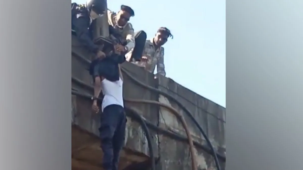 ब्रिज के ऊपर से गुजर रहे मोपेड सवार को एक अनजान गाड़ी वाले ने टक्कर मार दी और युवक उछलकर ब्रिज की दीवार पर गिर गया। किस्मत से, युवक की शर्ट ब्रिज पर लगे बिजली के खंभे में फंस गई और युवक 20 फुट ऊंचे ब्रिज पर लटक गया। उसी समय, दूसरे लोगों ने उसका हाथ पकड़कर उसे बचा लिया।