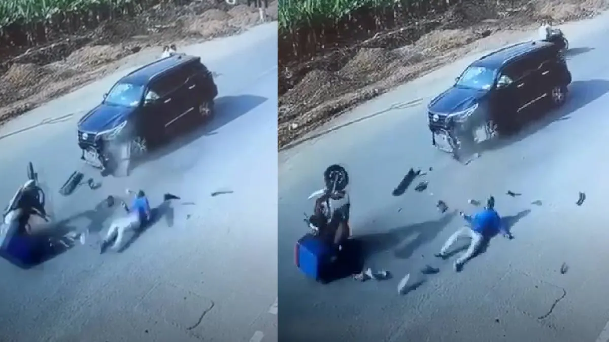 यह हादसा मोटा वराछा में श्याम शिखर रेजिडेंसी के बाहर हुआ। फ़ूड डिलीवरी राइडर अपने मोपेड पर ऑर्डर देने जा रहा था, तभी सामने से तेज़ रफ़्तार से आ रही एक कार से उसकी सीधी टक्कर हो गई। टक्कर इतनी ज़ोरदार थी कि राइडर कई फ़ीट दूर जा गिरा। गंभीर रूप से घायल राइडर को अस्पताल ले जाया गया। डिलीवरी राइडर को इस हादसे में गंभीर चोटें आईं और उसे तुरंत इलाज के लिए पास के एक प्राइवेट अस्पताल ले जाया गया।