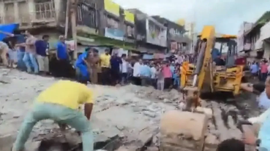 जूनागढ़: गुजरात के जूनागढ़ के दाता रोड पर 2 मंजिला इमारत गिरने से हड़कंप मच गया है। एनडीआरएफ ने इस हादसे पर जानकारी दी है कि मलबे में दबे अबतक चार शव बरामद किए गए हैं और एक मलबे में फंसा हुआ है। हादसे में कई लोगों के दबे होने की खबर है। इस घटना को जो वीडियो सामने आया है, उसमें चारों तरफ मलबा ही मलबा फैला दिख रहा है और मौके पर लोगों की भारी भीड़ है। पुलिस, एंबुलेंस, फायर बिग्रेड समेत राहत पहुंचाने वाली तमाम गाड़ियां मौके पर मौजूद हैं और मलबा हटाने का काम शुरू कर दिया गया है। स्थानीय लोग भी राहत कार्य में पूरी मदद कर रहे हैं।