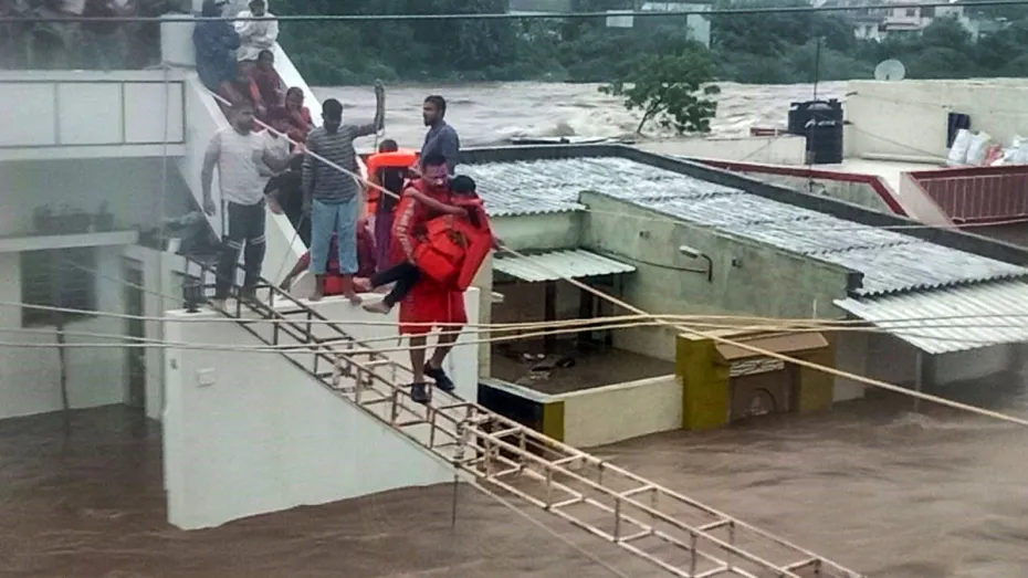 अधिकारियों के अनुसार भारी बारिश से बुरी तरह प्रभावित दोनों जिलों में राष्ट्रीय आपदा मोचन बल (एनडीआरएफ) और राज्य आपदा मोचन बल (एसडीआरएफ) की टीमों की ओर से चलाए जा रहे राहत एवं बचाव कार्यों में मदद के लिए भारतीय वायु सेना (आईएएफ), नौसेना और तटरक्षक बल को बुलाया गया। राज्य आपातकालीन परिचालन केंद्र (एसईओसी) ने एक ताजा बुलेटिन कहा कि राजकोट के लोधिका तालुका में मंगलवार सुबह छह बजे समाप्त 24 घंटे की अवधि के दौरान राज्य में सबसे अधिक 516 मिलीमीटर (मिमी) बारिश हुई।