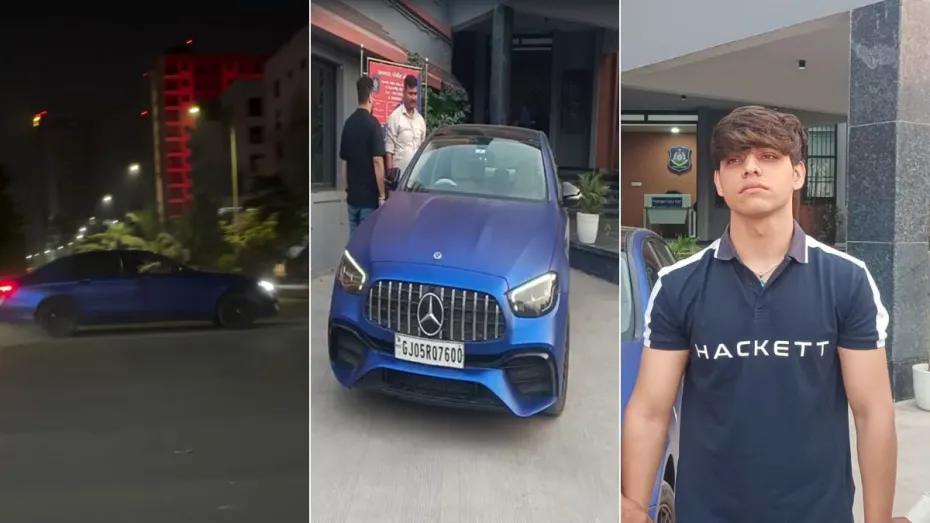 सूरत में एक युवक ने अपनी मर्सिडीज गाड़ी से सड़क पर ऐसा खतरनाक स्टंट किया कि देखकर रोंगटे खड़े हो जाए। मर्सिडीज को 360 डिग्री घुमाने का वीडियो वायरल होने के बाद पुलिस ने शुरू कर दी ओर एक 20 साल के युवक को हिरासत में ले लिया।