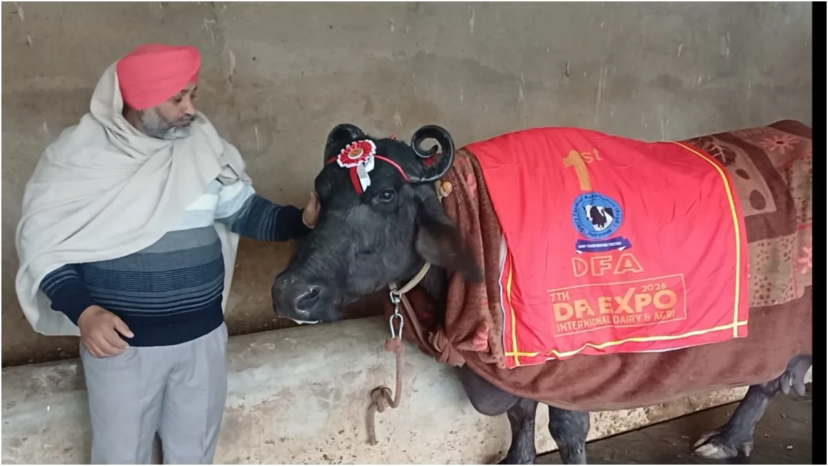 बिल्लू की मुर्रा भैंस सुंदरा ने हाल ही में कुरुक्षेत्र में DFA डेयरी फार्म एसोसिएशन हरियाणा के पशु मेले में 29.650 किलोग्राम (लगभग 29.65 लीटर) दूध एक दिन में देकर पहला स्थान हासिल किया। ये उपलब्धि काफी बड़ी है क्योंकि मुर्रा भैंस का औसत दूध 10-18 लीटर होता है, और 25 लीटर से ज्यादा दूध देने वाली भैंसें ही चैंपियन मानी जाती हैं। 29.65 किलो वाला रिकॉर्ड हरियाणा के टॉप लेवल कॉम्पिटिशन में भी बेहद शानदार है। बिल्लू हरियाणा के जाने-माने मुर्रा ब्रीडर हैं। उनकी फार्म पर कई सुपर क्वालिटी मुर्रा भैंसें हैं, जिनके मिल्किंग वीडियो पर यूट्यूब में लाखों व्यूज हैं। वह अच्छी क्वालिटी की भैंसें खरीद-बेचते भी हैं। उनकी एक भैंस एक बार 3.5 लाख में बिकी थी।