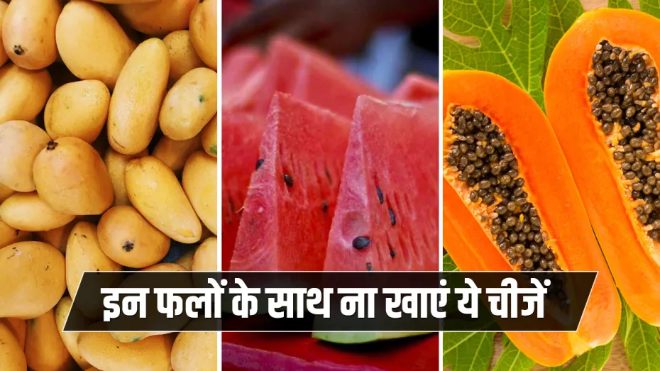 फल सेहत के लिए हमेशा लाभदायक होते हैं। इस वजह से इन्हें डाइट में शामिल करना बहुत जरूरी है। दरअसल, शरीर को सभी विटामिन्स और मिनरल्स मिलना जरूरी है, जो कि सिर्फ दाल, रोटी और सब्जी से नहीं मिल सकता है। इसी वजह से पूर्ण डाइट के साथ फलों का भी सेवन करना जरूरी है जिसके कि आप चुस्त और दुरुस्त रहें। लेकिन क्या आपको पता है। फलों का भी सही तरीके से सेवन करना जरूरी है। फलों को खाते वक्त उनके साथ कुछ भी खा लेना आपकी सेहत के लिए हानिकारक हो सकता है। हम आपको कुछ ऐसे फलों के बारे में बताएंगे जिनके साथ या फिर उन्हें खाने के बाद किन चीजों का सेवन नहीं करना चाहिए।