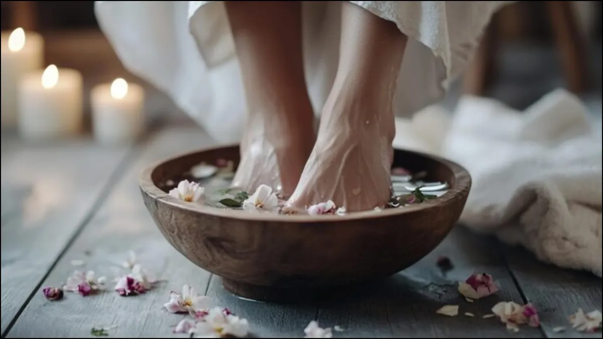 आजकल जिस तरह की लाइफ हम जी रहे हैं उसमें तनाव सभी पर भारी है। तनाव से शरीर में कई तरह की बीमारियां जन्म ले रही हैं। वहीं खराब डाइट और लाइफस्टाइल का असर शरीर को बीमार बना रही हैं। ऐसे में समय-समय पर बॉडी को डिटॉक्स करना जरूरी है। पैरों को रिलेक्स देकर शरीर को तनाव मुक्त किया जा सकता है। क्योंकि हमारे पैरों में 7 हजार से भी ज्यादा नर्व्स होती हैं, जिसमें से कुछ सबसे बड़े पोर्स वाली होती हैं जो सीधे लिम्फैटिक सिस्टम तक पहुंचती हैं। यानि पैरों के जरिए बॉडी को डिटॉक्स किया जा सकता है। इसके लिए रोजाना कुछ देर इस पानी में पैर डालकर बैठ जाएं। इससे बॉडी और दिमाग दोनों रिलेक्स होंगे।
