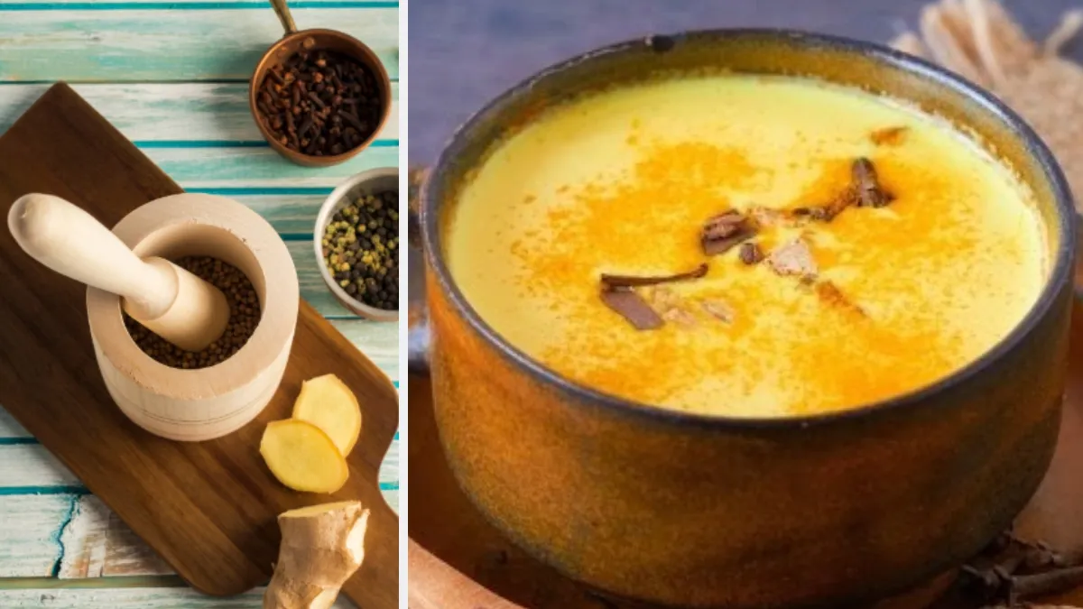 क्या आपने कभी दूध में हल्दी के साथ-साथ अदरक और काली मिर्च मिलाकर कंज्यूम की है? अगर नहीं, तो इस कमाल की ड्रिंक के हेल्थ बेनिफिट्स के बारे में जानने के बाद आप भी इस तरह से दूध पीना शुरू कर देंगे। दूध, हल्दी, अदरक और काली मिर्च का कॉम्बिनेशन सेहत को चौतरफा लाभ पहुंचा सकता है। इन सभी चीजों में औषधीय गुणों की अच्छी खासी मात्रा पाई जाती है, जो सेहत से जुड़ी कई समस्याओं से बचाव करने में मदद कर सकती है।