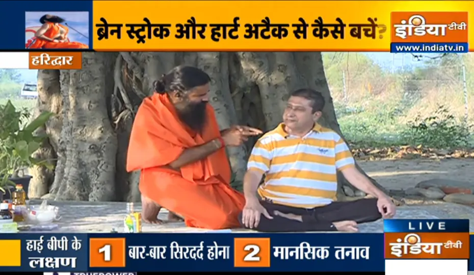 स्वामी रामदेव के अनुसार खराब लाइफस्टाइल, तनाव, गलत खानपान जेनेटिक कारण, अधिक नमक सेवन, कम पानी पीना, कोलेस्ट्राल, स्ट्रेस, किडनी और लिवर का फंक्शन नॉर्मल ना होना, कम सोने के कारण, गुस्सा ज्यादा आने के कारण हाई बीपी का शिकार हो जाते हैं। हाई बीपी के मरीज रोजाना योग , प्राणायाम और एक्यूप्रेशर प्वाइंट्स को दबाकर कुछ ही दिनों में खत्म कर सकते हैं।